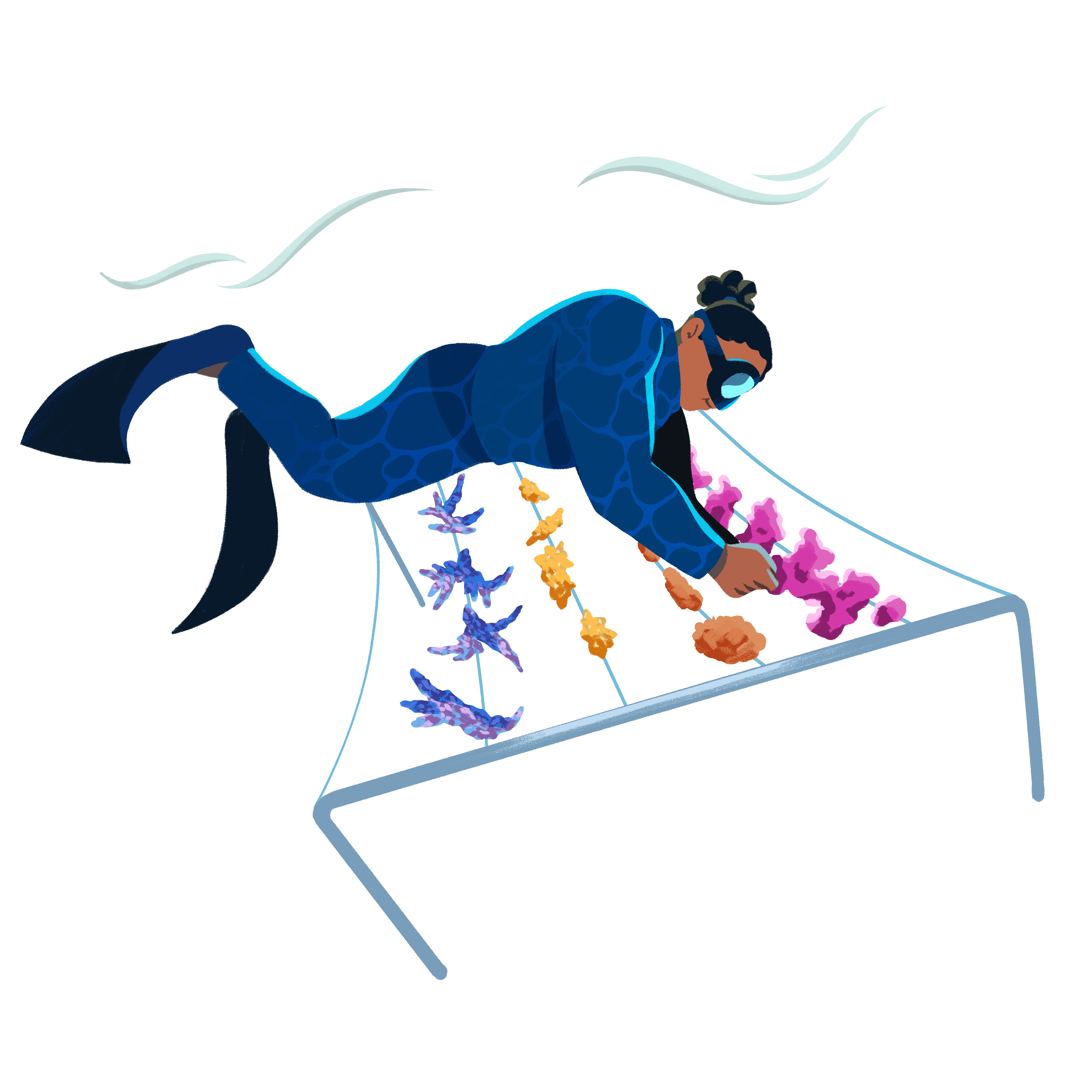 Coral Gardeners identify and collect coral fragments from nearby healthy reefs, picking up pieces from the seafloor or via a process similar to conventional plant clipping in a terrestrial garden.